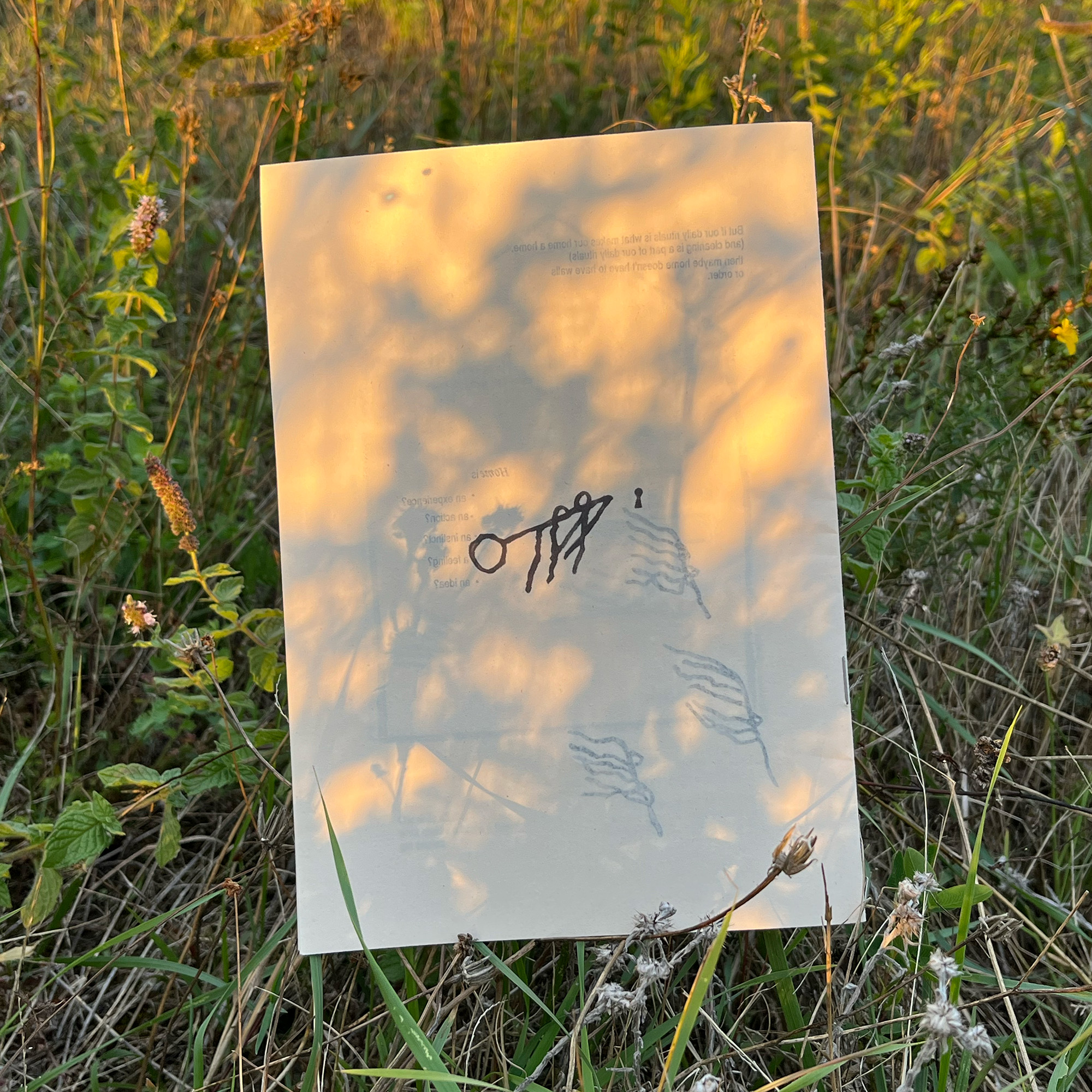 A zine exploring thoughts on the home and ownership in relation to wilderness. Made and printed at Habitat cultural center in Ca' de Monti, Italy.