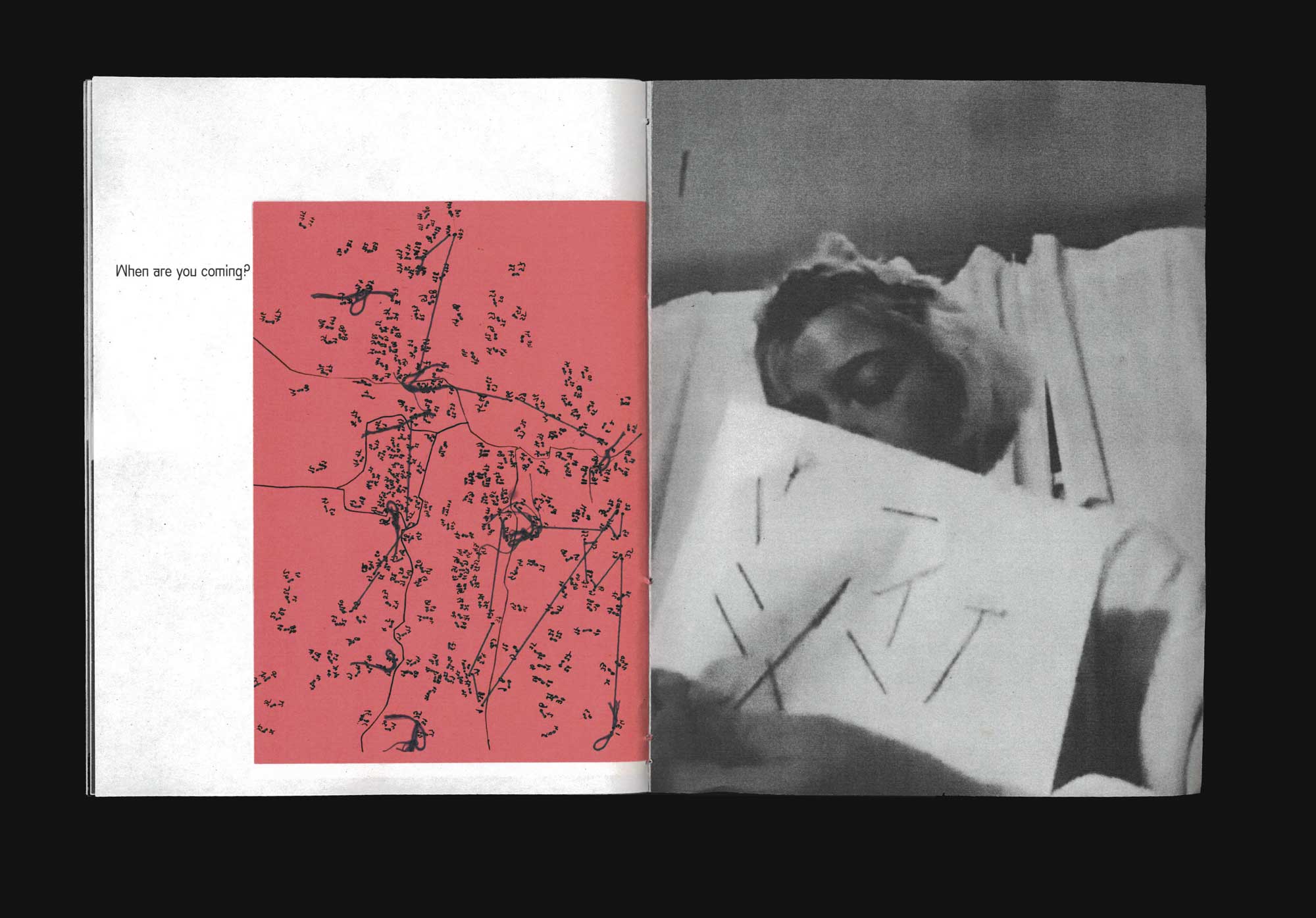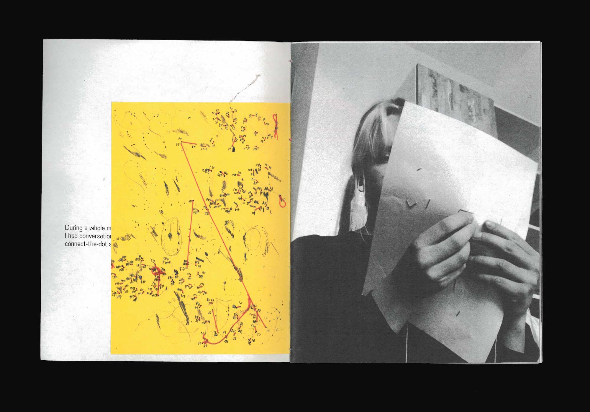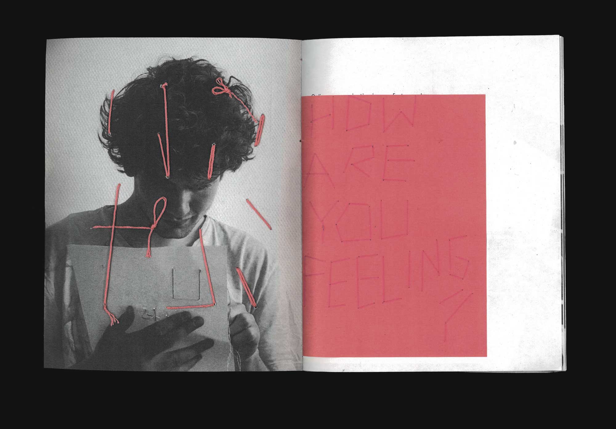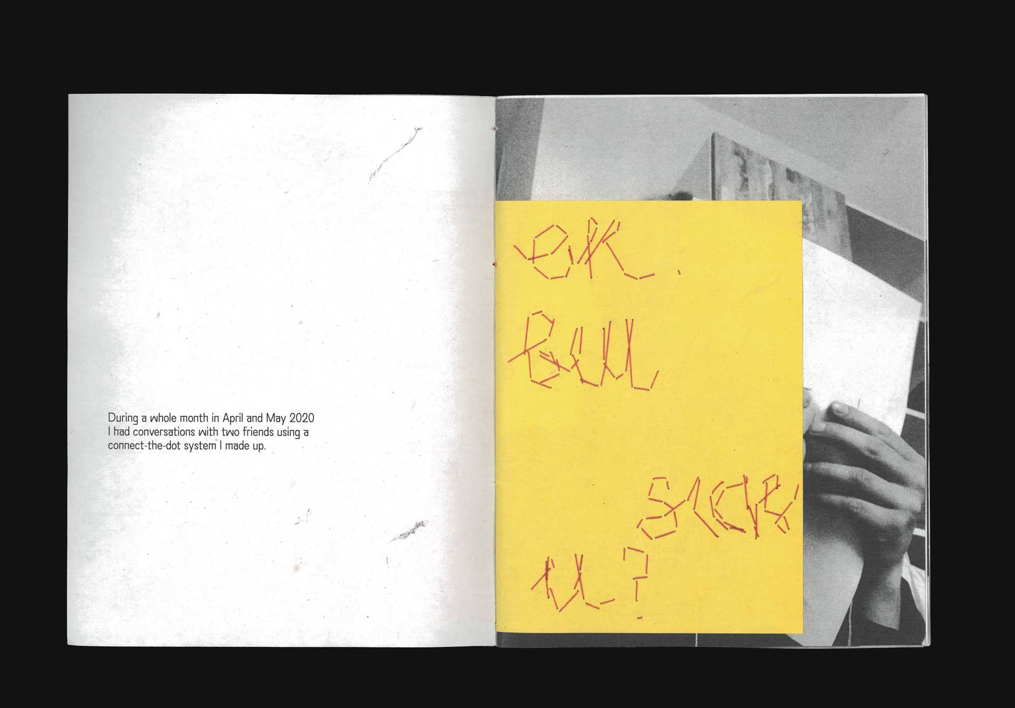 A booklet documenting two conversations with friends. Each message was revealed through the recipent sewing according to the senders instructions. 155 x 200 mm